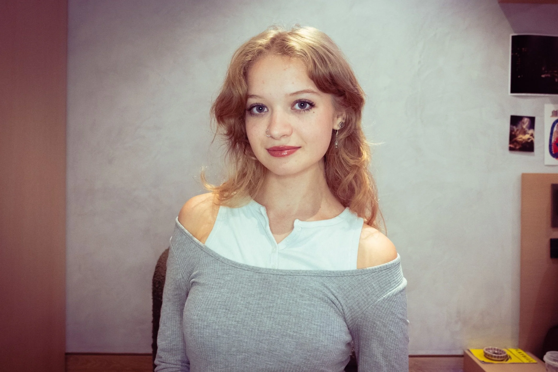 Adela Skarz (b. 2003, New York City) is a multidisciplinary artist based between Brooklyn and Queens, New York. Rooted in both formal training and self-exploration, her practice encompasses oil painting, colored pencil drawing, photography, collage, and fashion design. Skarz studied visual art at American University and John Cabot University, where she completed coursework in drawing, still life painting, printmaking, and photography. This education, combined with a disciplined personal practice, informs her evolving approach to materials, composition, and color.